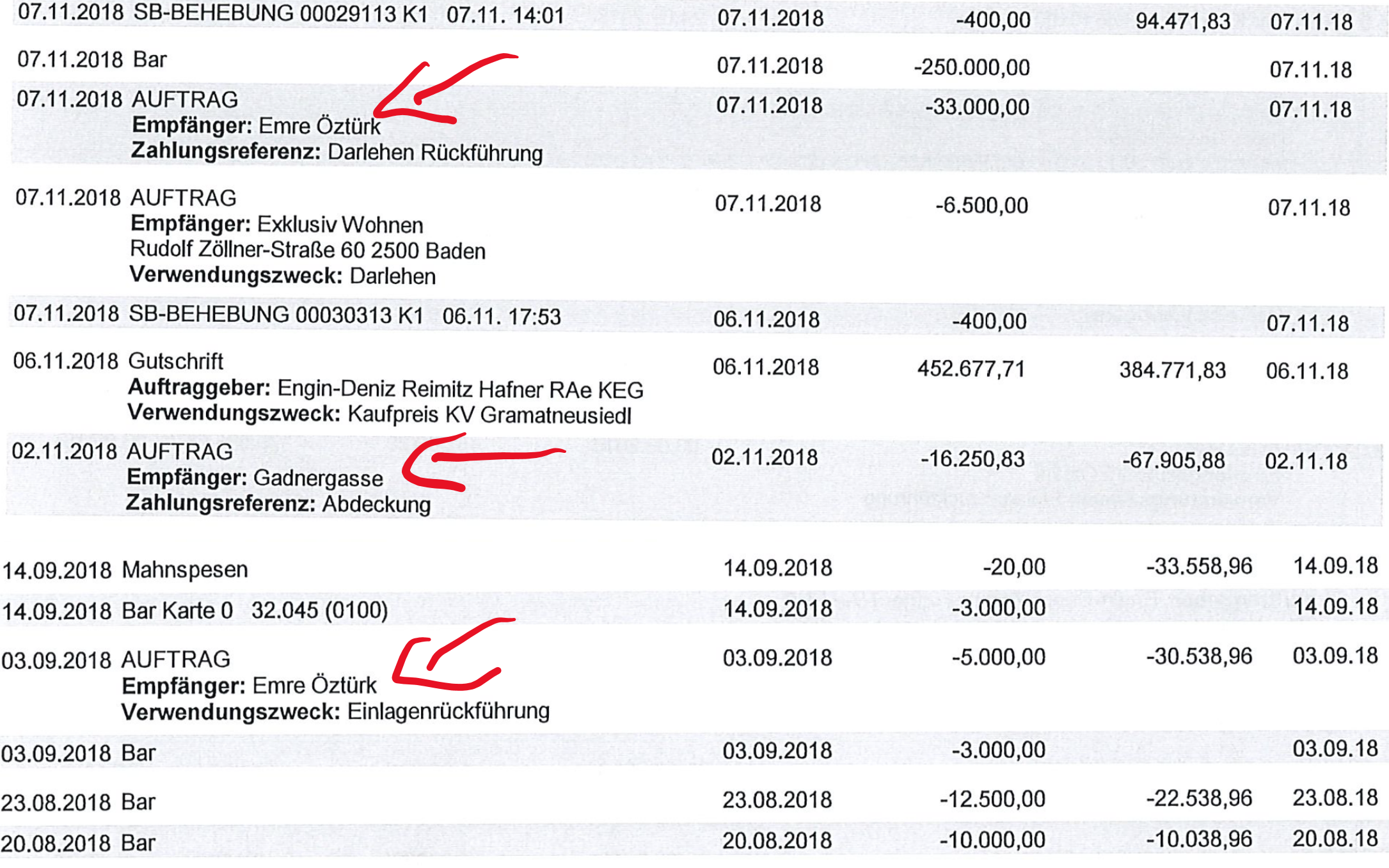 Die Raimund Sagl hat auch Geld an den Geldverleiher Emre Öztürk überwiesen. Als Zahlungsbetreff wurde Darlehensrückzahlung oder auch Einlagenrückführung angegeben. Interessant ist, dass aus den Bankkonten kein Darlehens-Eingang von Öztürk verbucht war. Angeblich war das ein persönliches Darlehen von Wagenhofer, das über die Raimund Sagl bezahlt wurde.