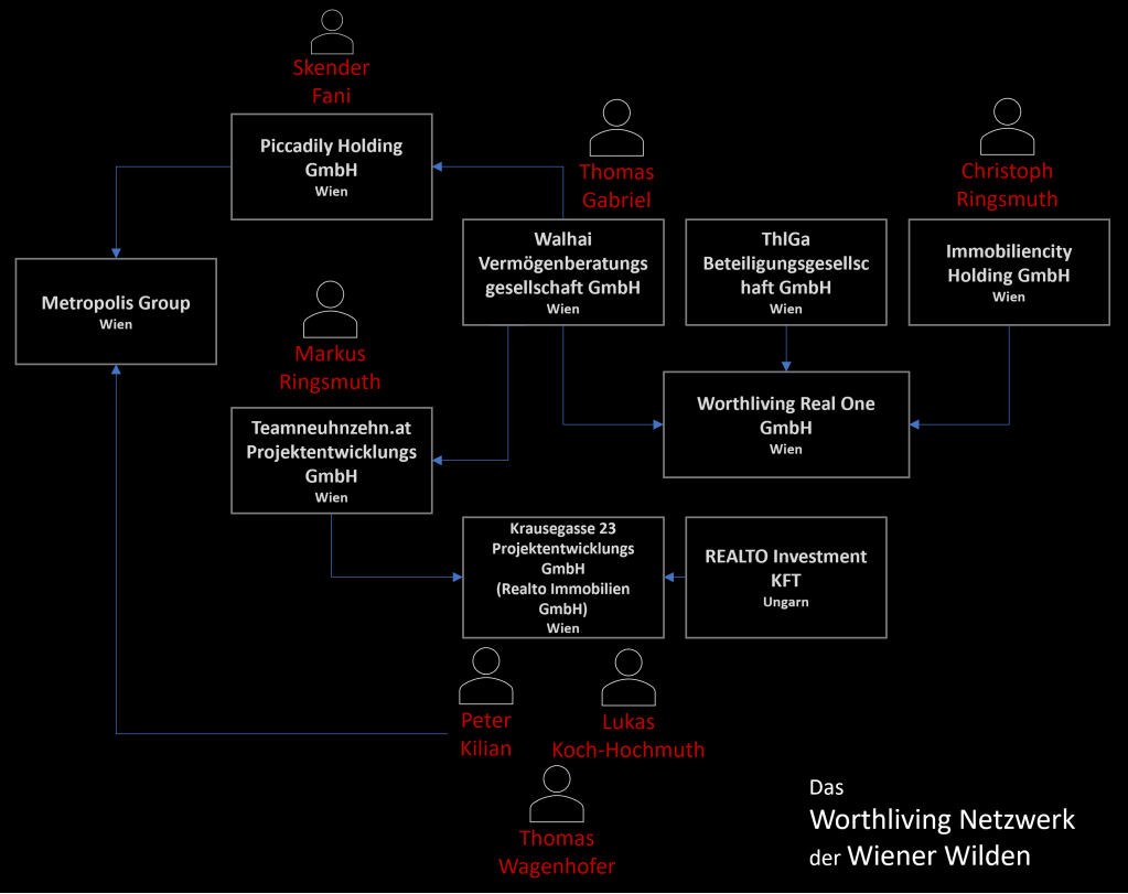 - Die Walhai Vermögensberatungsgesellschaft war auch neben der teamneuhnzehn.at Projektentwicklungs GmbH von Markus Ringsmuth die Gesellschafterin der Krausegasse 23 Projektentwicklungs GmbH, heute die REALTO Immobilien GmbH von Peter Kilian und Lukas Koch-Hochmuth.