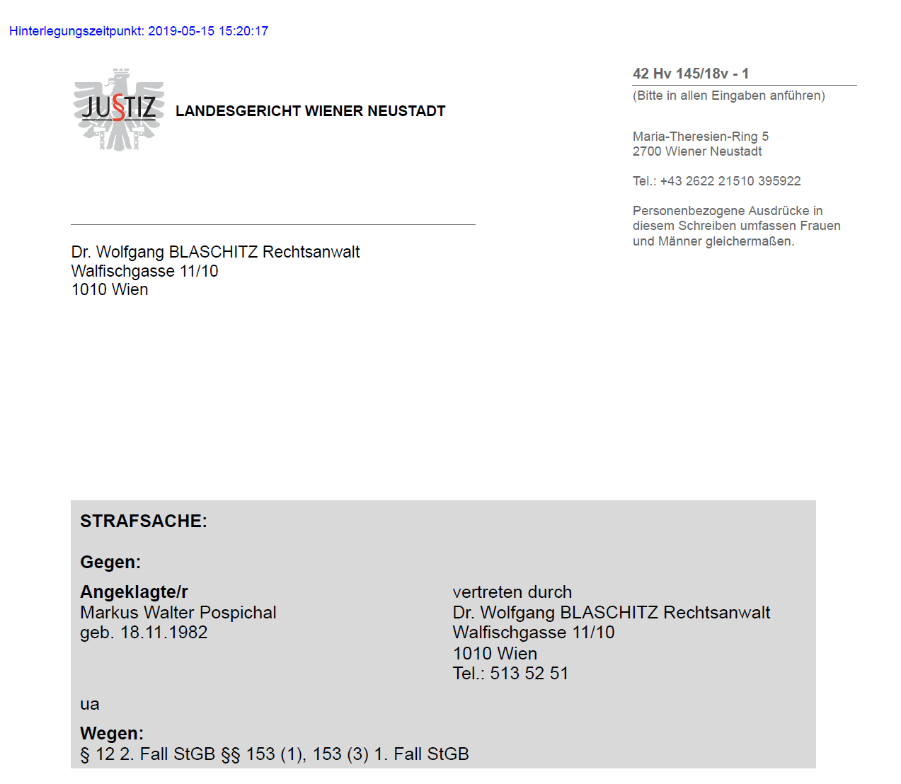 Pospichal hat bereits Konkurse und Verurteilung mit bedingten Haftstrafen hinter sich. Seine enge Geschäftsbeziehung zum ehemaligen Rechtsanwalt und verurteiltem Rechtsextremen Harald Schmidt drückt Pospichal, der selbst für die FPÖ in seiner Heimat-Gemeinde tätig ist, eine „ich bin rechts“ Punzierung auf.