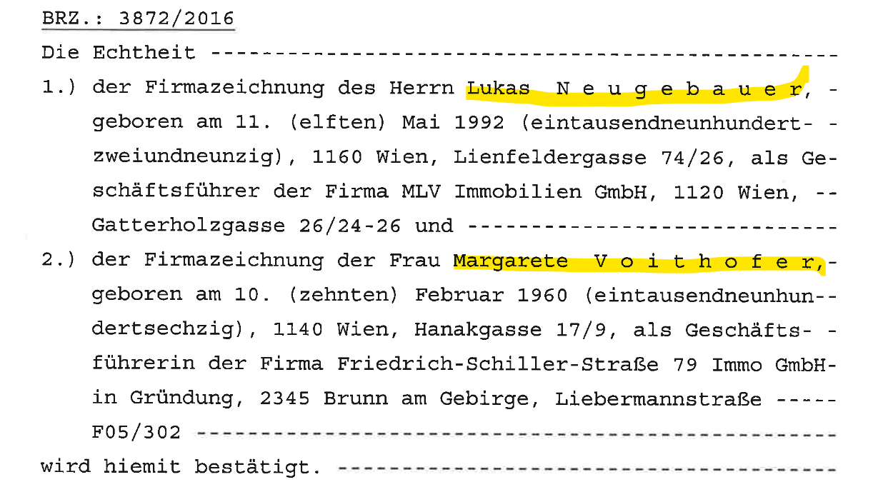 - Dezember 2016: Weiterverkauf aus der MLVI-Sphäre um rund € 5,68 Mio an eine Gesellschaft aus dem Voithofer-Geflecht. Unterzeichnung: u. a. Lukas Neugebauer und Margarete Voithofer.